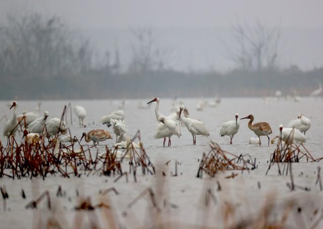 白鹤是国家一级重点保护动物,被誉为鸟类的“活化石”,全球只有不到4000只,其中98%每年都会到鄱阳湖越冬。白鹤在中国传统文化中也只有一席之地,象征健康长寿、吉祥如意。