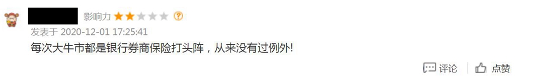面对12月首日的这一波行情,投资者又怎么看呢?股吧里面,有投资者表示:每次大牛市都是银行券商保险打头阵,从来没有例外过!