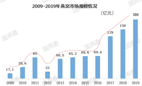 随着燕窝进口政策的松绑和电商兴起,我国作为世界最大的燕窝消费国,其市场呈高速增长态势。全国城市农贸中心联合会燕窝市场专业委员会11月发布的《2019年中国燕窝行业白皮书》(下称《白皮书》)显示,我国燕窝市场年复合增长率达到30%以上,2019年整体市场规模达到300亿元左右。