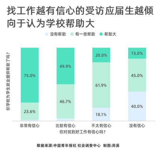 对找工作越有信心的受访应届生,越认为学校的帮助大