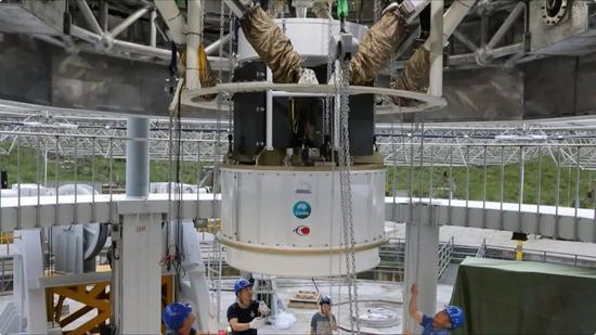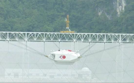 这个由6根钢索拖动的平台专门负责收集望远镜反射面接收到的外太空信号。