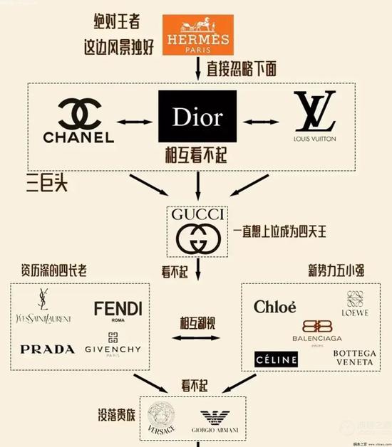 网上流传的奢侈品牌鄙视链