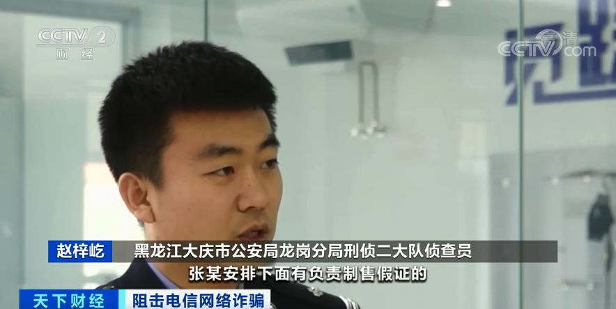 黑龙江大庆市公安局龙岗分局刑侦二大队侦查员 赵梓屹:他们这个团伙分工很明确,张某安排下面有制售假证的,有负责联系补卡人员的,还有陪同补卡人员的,当第一时间补卡人员补卡之后,利用陪同人员的手机,负责接收短信验证码,从而完成虚拟货币雷达币成功转出。