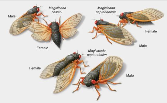 3种“17年蝉” (图片来源:Cherie Sinnen/SA)