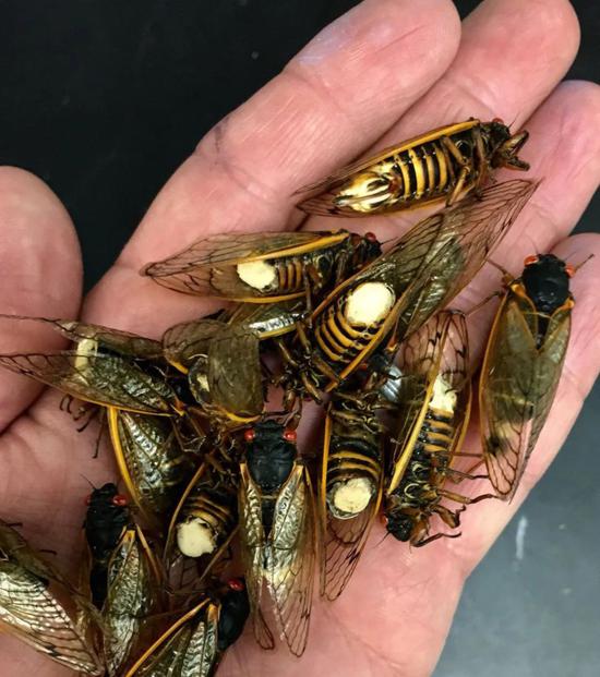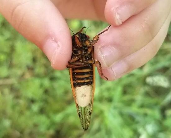 有趣的是,Brood蝉是为数不多生活周期与捕猎者/病原体相同的物种。放到当下的场景里,即“17年蝉”开始行动时,它的敌人也开始行动了。一种名为蝉团孢霉菌(Massospora cicadina)的真菌,简直就是与“17年蝉”形影不离。按照长期研究该领域专家Matt Kasson的说法,这种真菌只选择性地感染周期性蝉。Kasson是西弗吉尼亚大学的传染病学家,他一直在丛林里等待这批“17年蝉”破土。