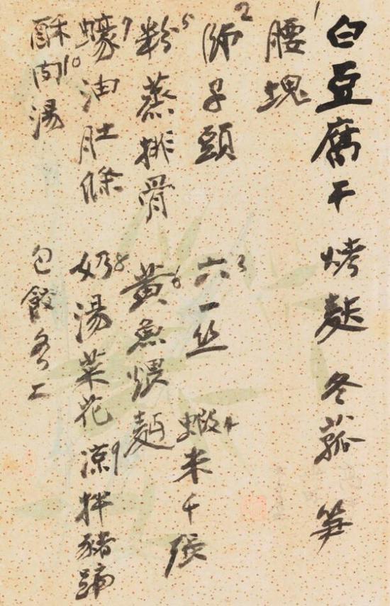 张大千《菜单 — 白豆腐干》