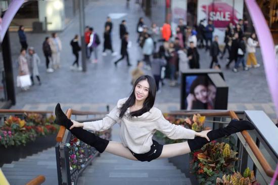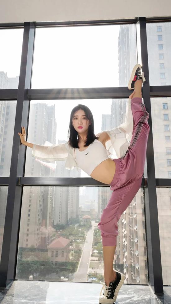 舒思瑶不会想到,自己在公寓过道出摆出一字马造型的照片出圈了。