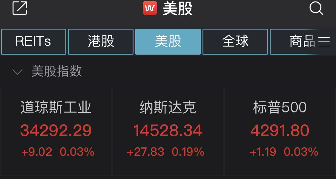 截至收盘,道指收涨9.02点,涨幅为0.03%,报34292.29点;纳指收涨27.83点,报14528.34点,涨幅为0.19%;标普500指数收涨1.19点,报4291.8点,涨幅为0.03%。