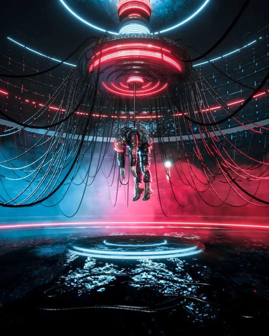 牛逼的色彩处理和建模,将未来的科技感和神秘感,诠释得淋漓尽致,有种穿越进了“赛博朋克”的世界的幻觉。