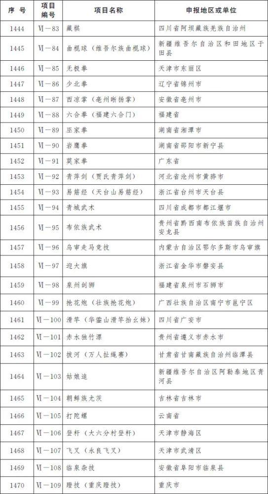 六、传统体育、游艺与杂技(共计27项)
