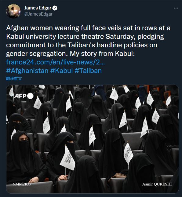 阿富汗宣布大学女生新规之际,这张照片在推特疯传