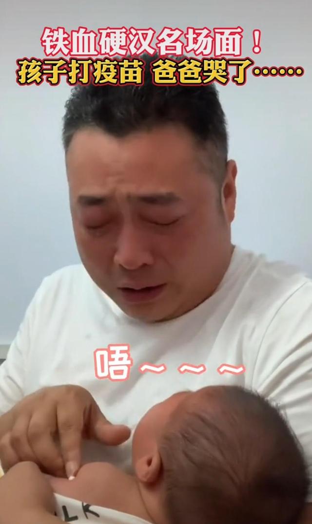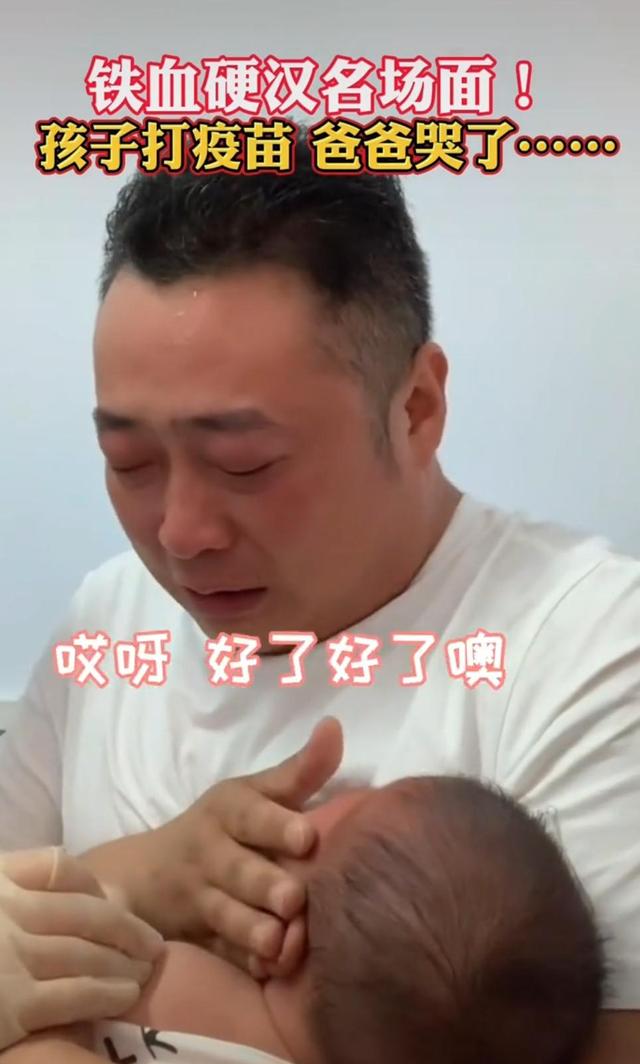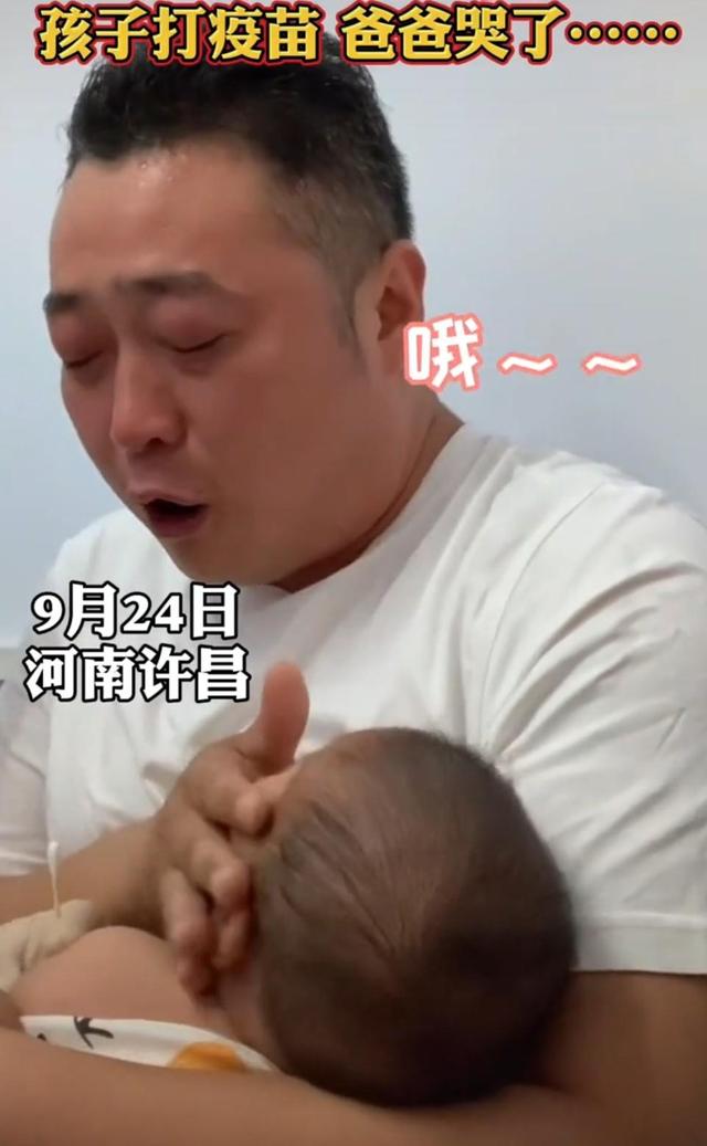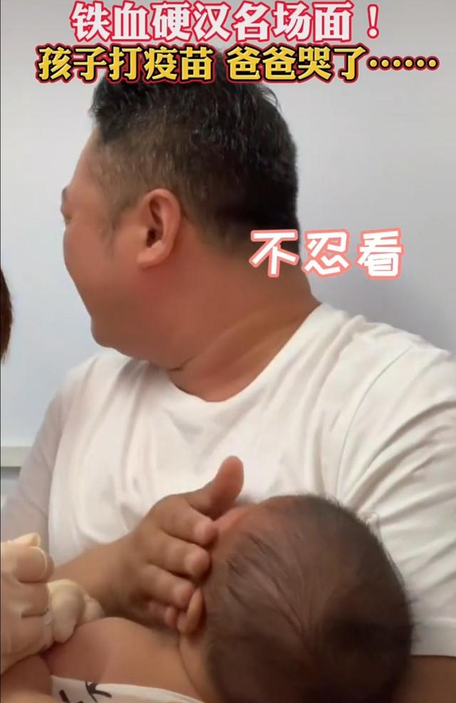 男子带孩子打针,自己却哭了的视频在网上曝光之后得到很多网友的认可。
