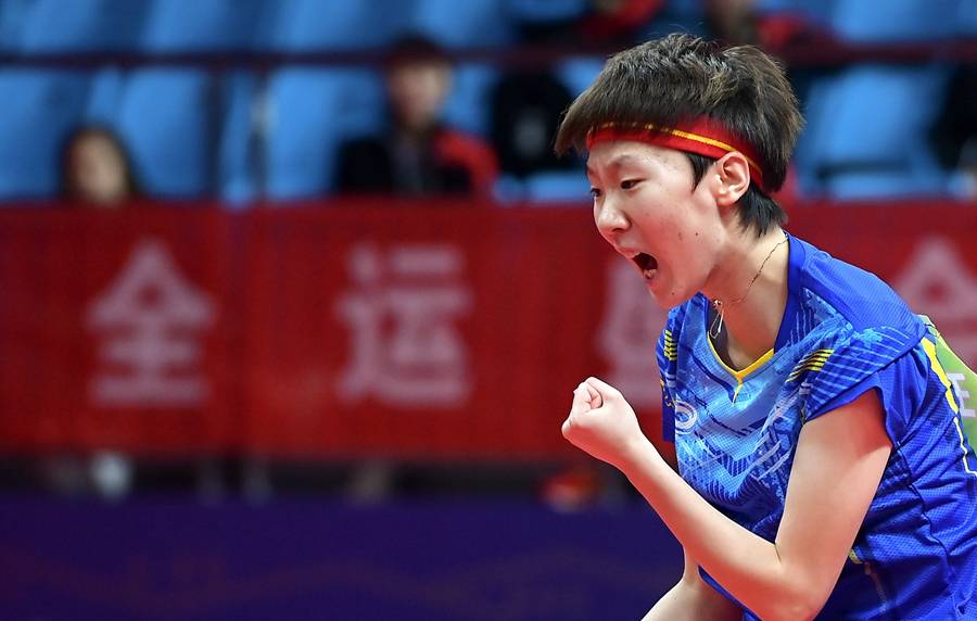 北京时间9月25日,中华人民共和国第十四届运动会进入到了第11个比赛日的争夺,在延安大学体育馆进行的乒乓球项目女子单打项目的金牌争夺战当中,本来外界预期的火星撞地球般的七局大战并未上演,黑龙江队的王曼昱第四局末段连拿7分,4-0(12-10、11-9、14-12、11-7)横扫河北队的孙颖莎,夺得金牌。铜牌争夺战当中,广东队的刘诗雯3-1(11-9、5-11、11-4、11-3)打崩了头号种子、山东队的陈梦,连续两天有奖牌进账。
