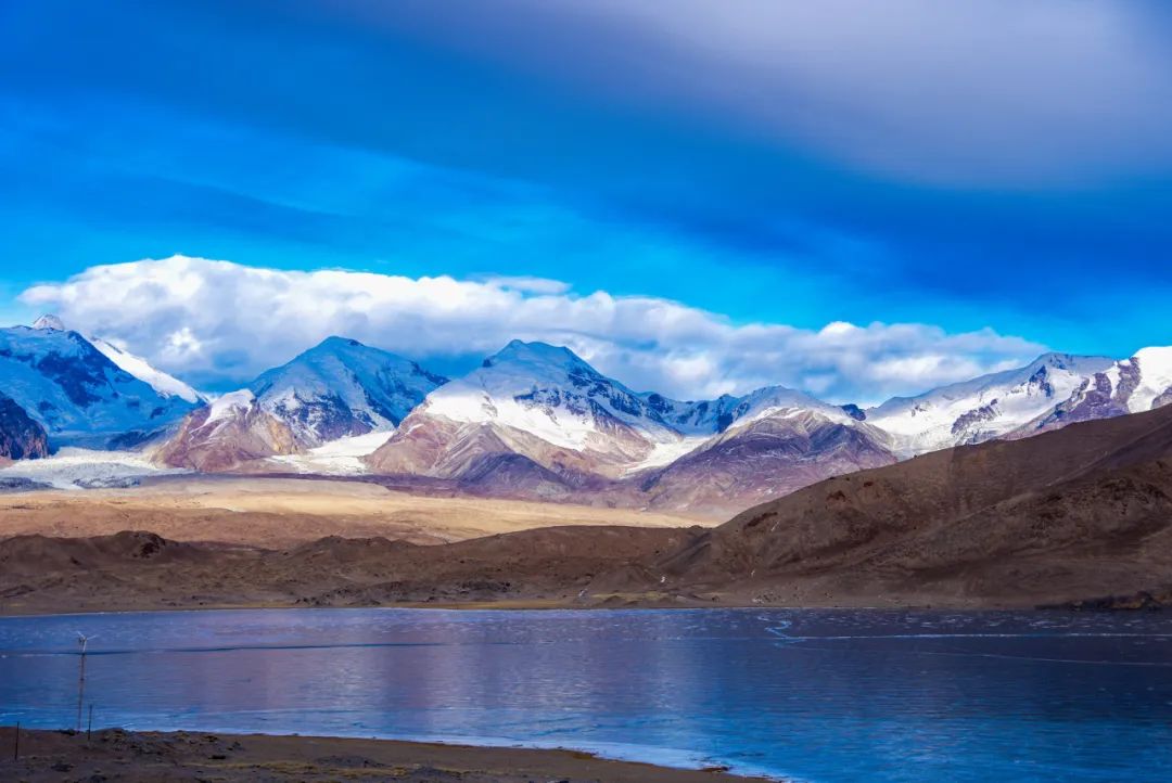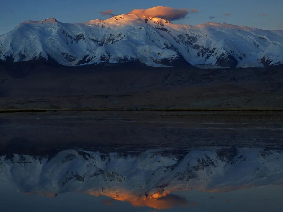 此外,慕士塔格山和脚下的卡拉库里湖仿佛天作之合,天空如洗,湖水如镜,倒映着慕士塔格山、公格尔山以及公格尔九别山这一连串的雪山。