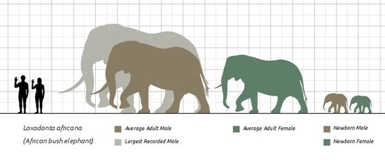 今天地球上最大的陆生动物是非洲草原象(Loxodontaafricana),这个大家伙的平均肩高3.2米,体重6吨,站在它们的面前,我们总是感叹自己的渺小。当非洲草原象站在最大的恐龙面前的时候,非洲草原象就要感叹自己的渺小啦。