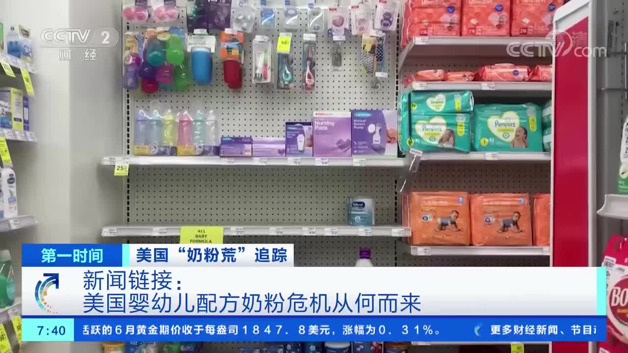 美国国内婴幼儿配方奶粉短缺已经持续数月,起初归因于供应链不畅和工人短缺。今年2月,美国最大奶粉供应商雅培公司因产品安全问题召回数款配方奶粉,关闭其密歇根州工厂,加剧“奶粉危机”。