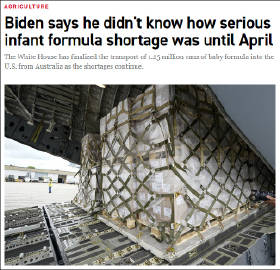 美国国内婴幼儿配方奶粉短缺已经持续数月,起初归因于供应链不畅和工人短缺。今年2月,美国最大奶粉供应商雅培公司因产品安全问题召回数款配方奶粉,关闭其密歇根州工厂,加剧“奶粉危机”。白宫此前声称,自雅培出现安全问题以来,政府一直在“7天乘以24小时”地处理这个问题,但拜登如今却承认“4月才得知问题严重性”。