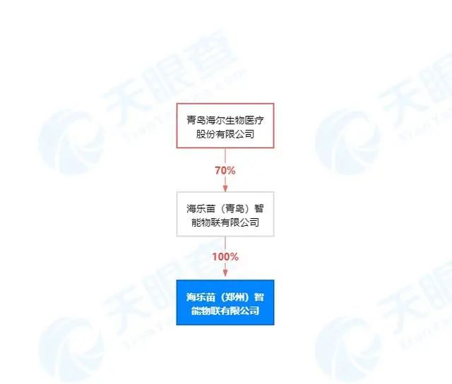 而据天眼查APP信息显示,该公司于2022年5月7日成立,时间距上述公示日期仅提前了11天。“海乐苗”的法定代表人为何晨杨,注册资本1000万,由海乐苗(青岛)智能物联有限公司100%控股,而后者公司大股东为青岛海尔生物医疗股份有限公司。
