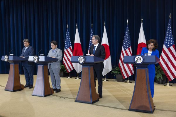 “这将加速印太及其他地区全面、开放、可持续的经济增长。”美国国务卿布林肯在会议后的联合记者会上表示,“日美双方就深化合作以强化经济秩序达成一致。”