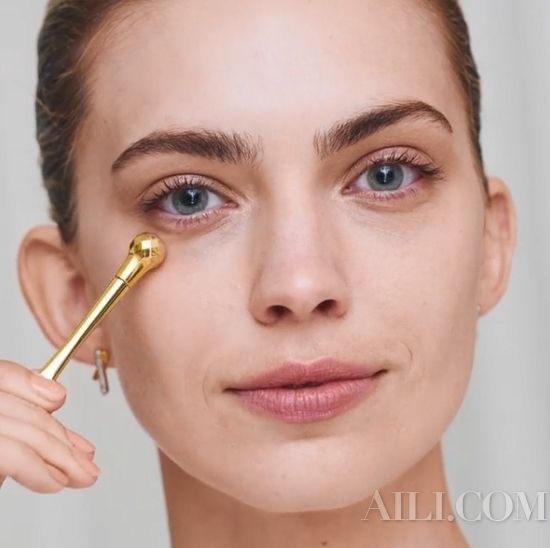 使用眼霜时,应从内眼角、上眼皮、眼尾的顺序按摩眼周。