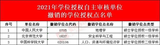 2021年学位授权自主审核单位撤销的学位授权点名单