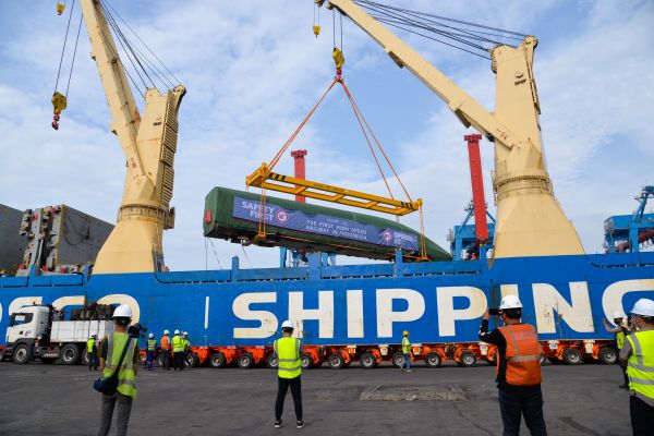报道称,1日抵达的1组高速动车组和1组综合检测列车是由中车青岛四方机车车辆股份有限公司设计建造的。