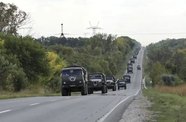 报道注意到,塔斯社和俄罗斯新闻社分享了俄罗斯国防部的视频,显示有军事车辆在道路上行进,有些插着俄罗斯国旗,喷涂字母“Z”,即俄罗斯军事行动的符号。