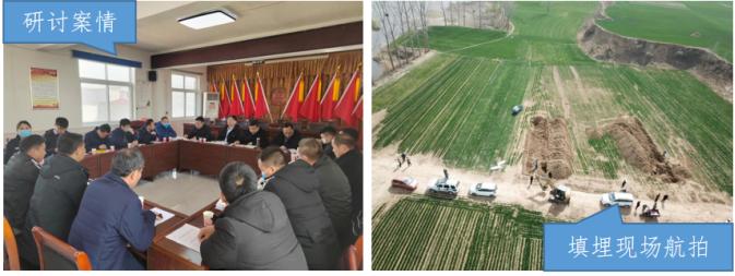 在对非法贮存危险废物进行调查的同时,生态环境部门又接到举报称涉事院子的周围农田里填埋有危险废物。2022年3月1日,执法人员利用无人机对周边环境进行搜寻,发现两处农田存在倾倒掩埋废矿物油痕迹后,立即联合相关部门组织挖掘机对涉事农田进行开挖,现场挖出约50吨的含油土壤、液体吨桶和黑色油泥袋。