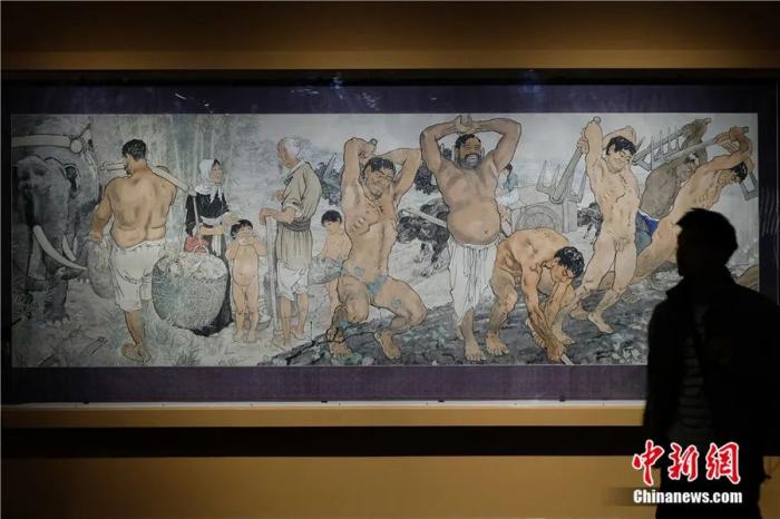 观众参观徐悲鸿的作品《愚公移山图》。泱波 摄
