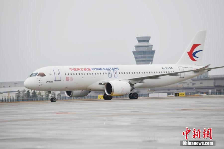 图为C919国产大飞机首次降落在成都天府国际机场。 张浪 摄