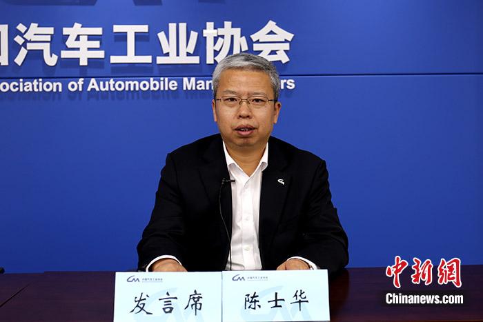 1月12日,中汽协副秘书长陈士华在月度信息发布会上公布2022年中国汽车产销相关数据。 中汽协供图