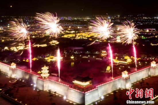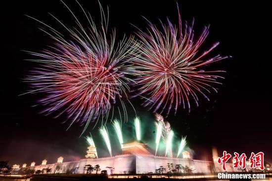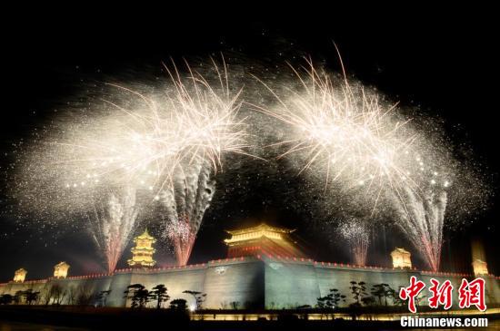 1月31日晚,山西省太原市太原古县城上演大型烟花秀,为古城增添一道美丽景观。太原古县城是张艺谋执导电影《满江红》的拍摄地,吸引广大游客关注。
