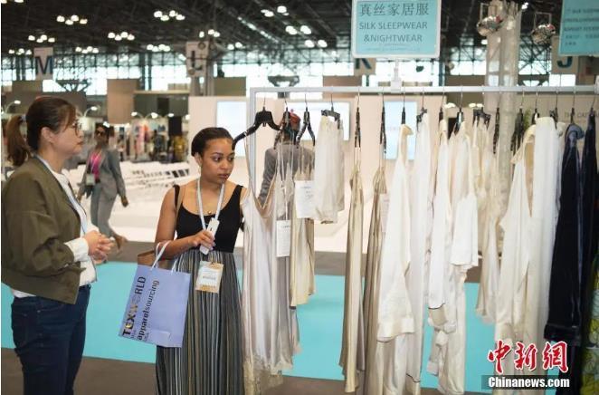 资料图:美国客户参观“中国纺织品服装贸易展览会”。 中新社记者 廖攀 摄