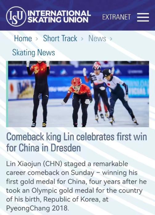 国际滑联盛赞林孝埈表现。