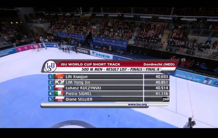北京时间12日晚结束的短道速滑世界杯多德雷赫特站男子500米决赛中,林孝埈以40秒693率先撞线,继德斯顿站一日双金后再次夺金!