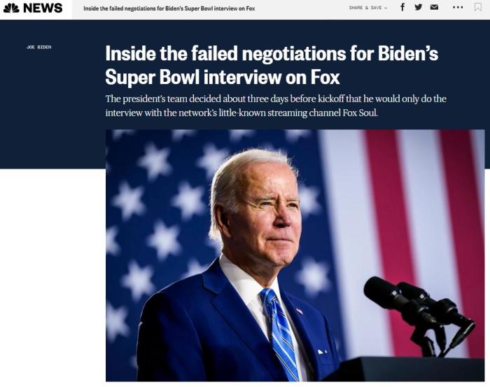 根据NBC报道,福克斯本来提出由当家名嘴布雷特·拜尔(Bert Baier)或香农·布雷姆(Shannon Bream)对拜登进行专访,但白宫团队拒绝了这些选择,直到开赛前72小时才决定,只接受福克斯旗下规模较小、以非裔为主要收视群的串流媒体平台Fox Soul采访。