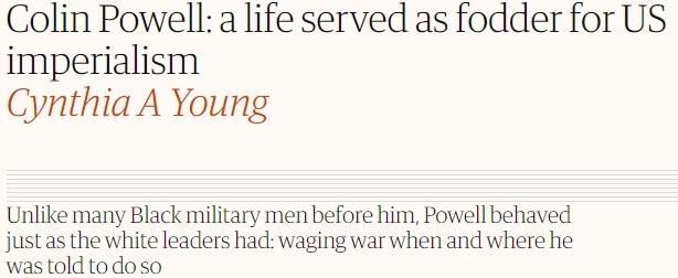 英媒评论文章将鲍威尔形容为“美帝国主义的炮灰”。图片来源:英国《卫报》报道截图