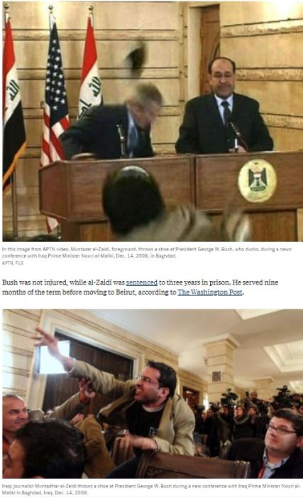 小布什则把这件事记了一辈子,他在回忆录中表示,“希望自己接住了那该死的东西(鞋)”。