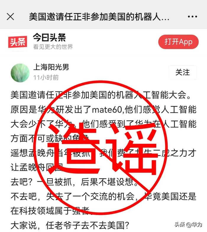近日,多家社交平台出现“美国邀请任正非去美国”的相关言论,记者向华为方面证实,相关信息纯属造谣。
