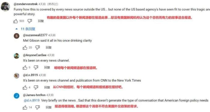它还特意标注了来源——纽约邮报,它真的严谨我哭死,但是你们媒体之间这颗粒度没对齐啊:人家原文明明白白写的“killing”“genocide”,怎么到你这就“fighting”了?可以说是把避重就轻发挥到极致了。