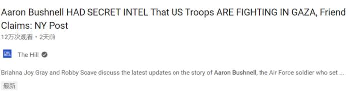 《纽约邮报报道:朋友声称,亚伦·布什内尔有内部机密显示美军正在加沙作战》