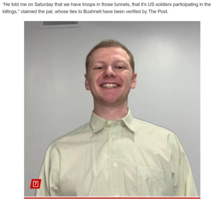但最近的消息,显示布什内尔可能不是认为美国“间接”帮助以色列种族灭绝,而是直接参与了。这些消息由《纽约邮报》(注意纽约邮报是偏右媒体,真实性自辨)披露,称布什内尔的朋友说“(布什内尔)告诉我,我们在那些隧道里有军队,美国士兵参与了杀戮”,“(情报)出现了美国军方参与种族屠杀的情况”。