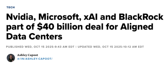 【环球网财经综合报道】据CNBC等外媒报道,当地时间周三,由全球知名投资机构贝莱德、科技巨头微软和英伟达等联合组建的投资财团AIP宣称,将以约400亿美元的价格收购全球领先的数据中心运营商Aligned。