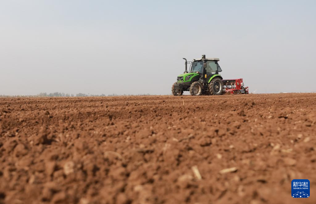 11月11日,农民驾驶农机在河南省焦作市温县黄河滩区播种小麦。 据农业农村部农情调度,截至11月10日,全国冬小麦播种近七成。 新华社发(黄福兴摄)pagebreak
