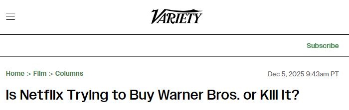 《综艺》:网飞是想收购华纳兄弟还是扼杀它?