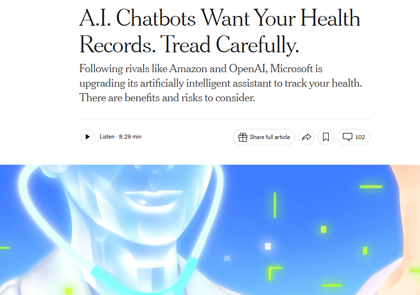 但《纽约时报》指出,此举暗藏多重风险:健康数据集中存储易成为网络攻击目标,且HIPAA隐私法规不适用于科技公司,数据可能被用于AI训练或定向广告;同时,AI健康建议缺乏可靠性,可能误诊、遗漏急症,还可能引发用户过度焦虑和不必要就医。