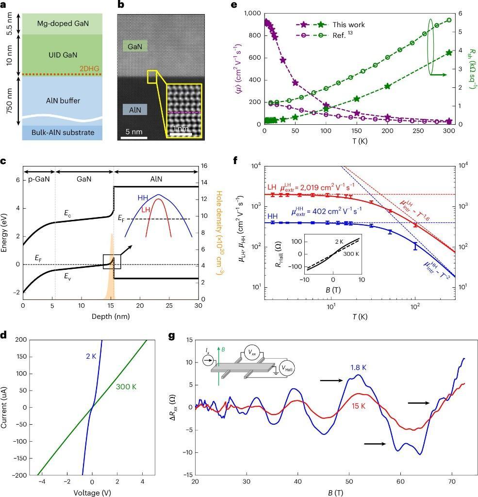 团队希望借助这些新发现,设计出兼具宽禁带材料优势与硅基电荷传输能力的半导体器件,并进一步探明能否提升氮化镓中空穴的迁移率。除改进晶体管设计,这项研究也为探索宽带隙半导体内的量子现象开辟了新途径。 |