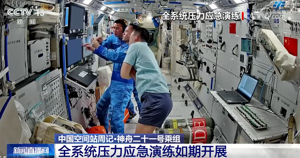 全系统压力应急演练按计划开展。演练模拟了空间站面临内部失压情况时进行紧急处置的全流程,巩固并进一步提升乘组的应急处置以及天地协同配合能力。
