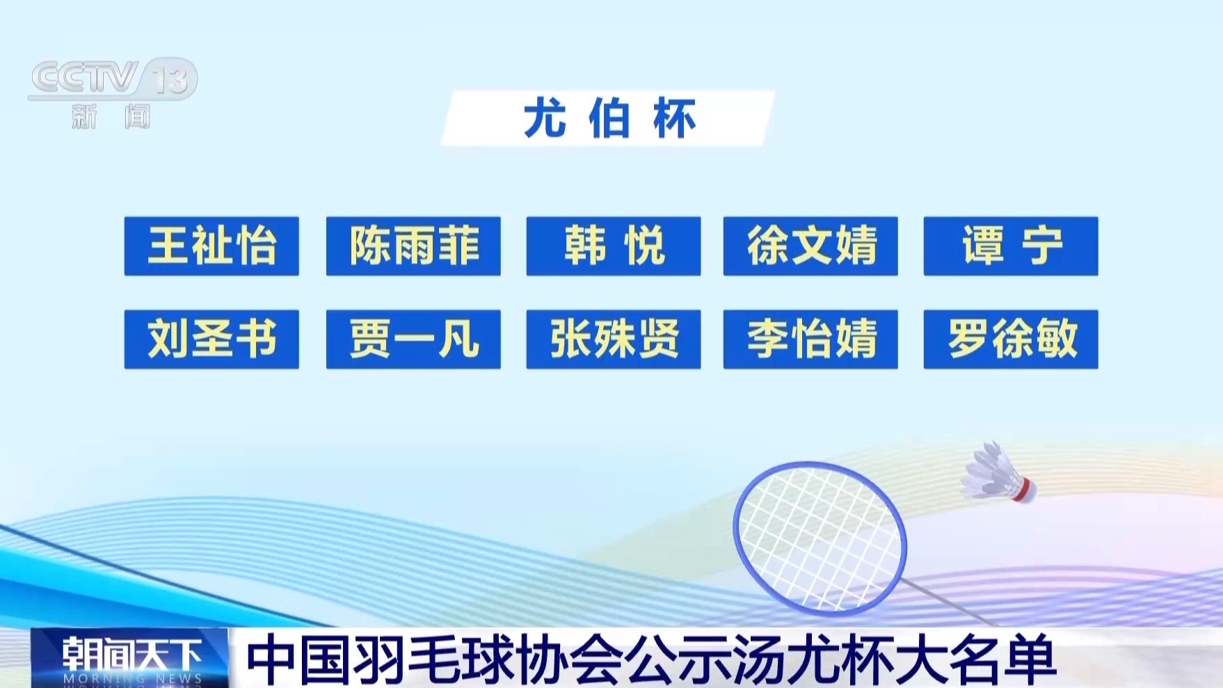 中国羽毛球协会昨日公示汤尤杯大名单。