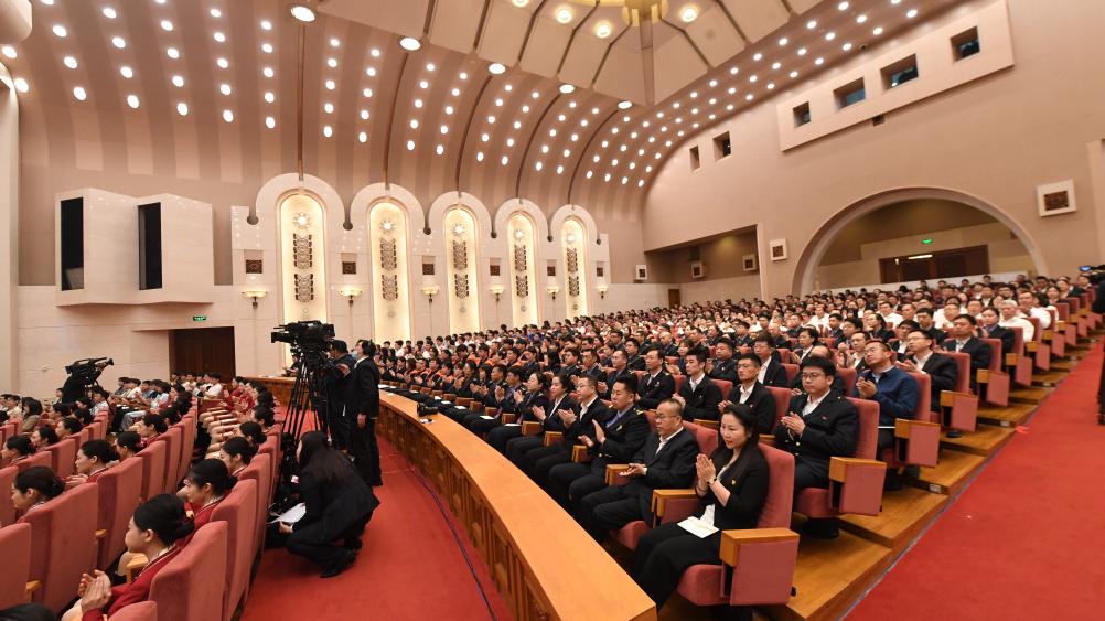 “时代楷模”单杏花同志先进事迹报告会在北京人民大会堂举行。新华社记者 刘雅萱 摄